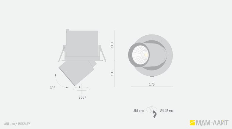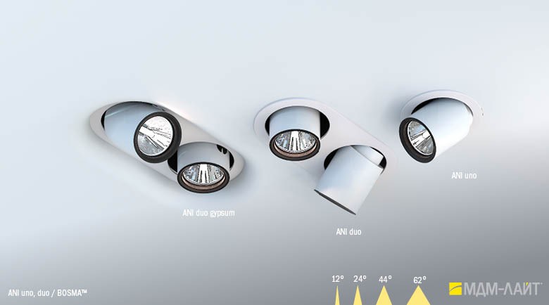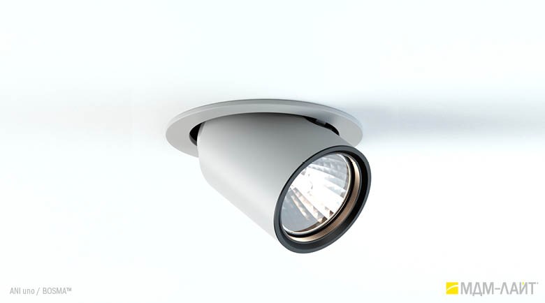 Металлогалогенный встраиваемый светильник ANI uno торговой марки БОСМА (BOSMA™). Имеет возможность поворота в двух плоскостях. Благодаря компактности модели, глубина встраивания светильника составляет всего 110 мм (установка требует минимального запотолочного пространства). Идеальное решение для ритейла.