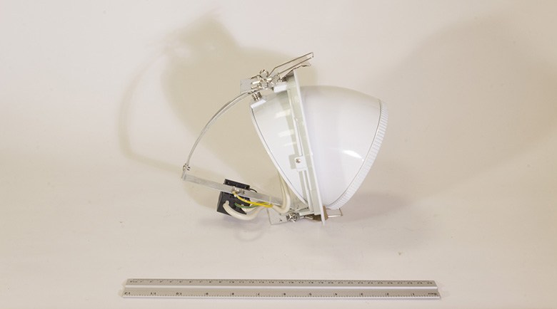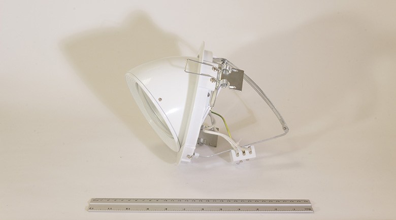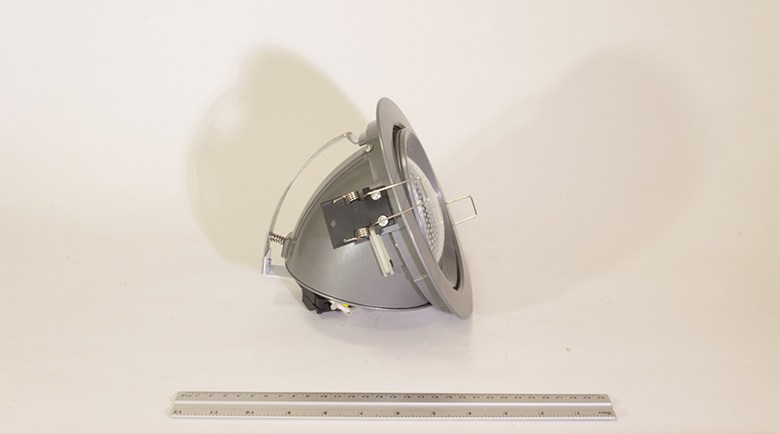 Встраиваемый поворотный металлогалогенный светильник для лампы мощностью 150 Вт. Корпус из литого алюминия, окрашенного порошковой краской. Отражатель из анодированного алюминия. Очень популярный светильник, используется в основном для освещения торговых пространств. Комплектация: корпус металлогалогенного светильника, закаленное защитное стекло. Светильник поставляется без лампы и ПРА. Рекомендуется использовать электромагнитный ПРА, возможна комплектация электронным ПРА . Рекомендуется использовать металлогалогенную лампу HQI-T 70 или 150 Вт.