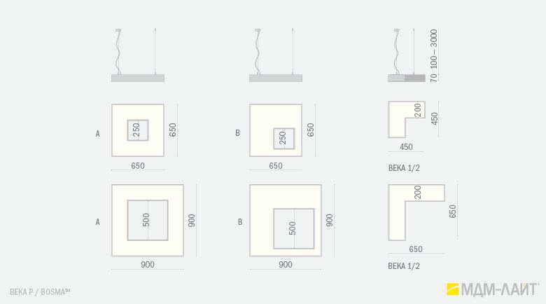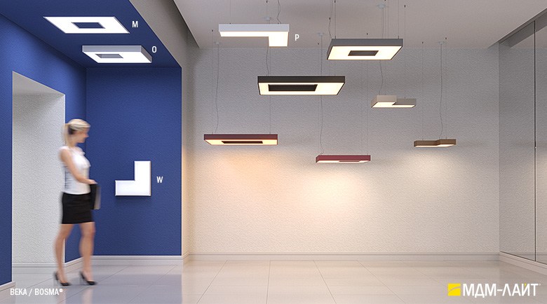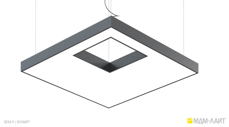 Серия больших светильников BEKA в форме квадрата с декоративным отверстием и Г-образной формы. Широкое светораспределение обеспечивает равномерную и комфортную освещенность без эффекта ослепления. Серия включает несколько размеров с разными типами крепления (подвесные, накладные, встраиваемые), и возможностью монтажа на потолок или стену. Светильник разработан и производится в России.