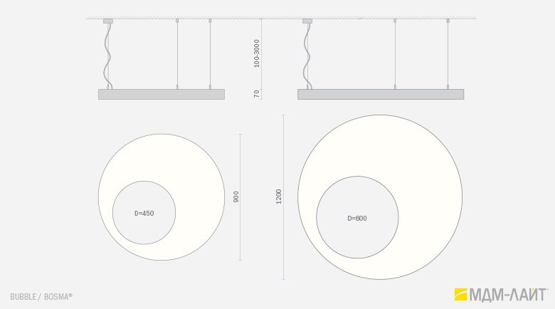Широкое светораспределение обеспечивает равномерную и комфортную освещенность без эффекта ослепления. Серия включает несколько размеров с разными типами крепления (подвесные, накладные, встраиваемые), и возможностью монтажа на потолок или стену. Светильник разработан и производится в России.