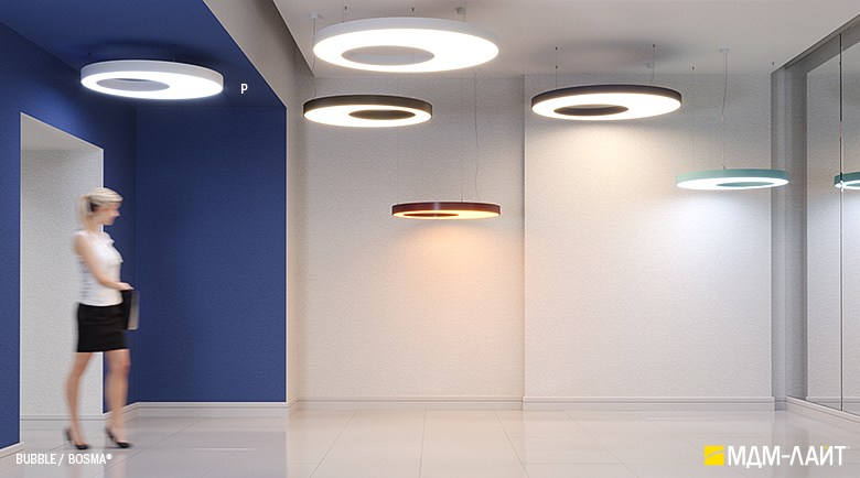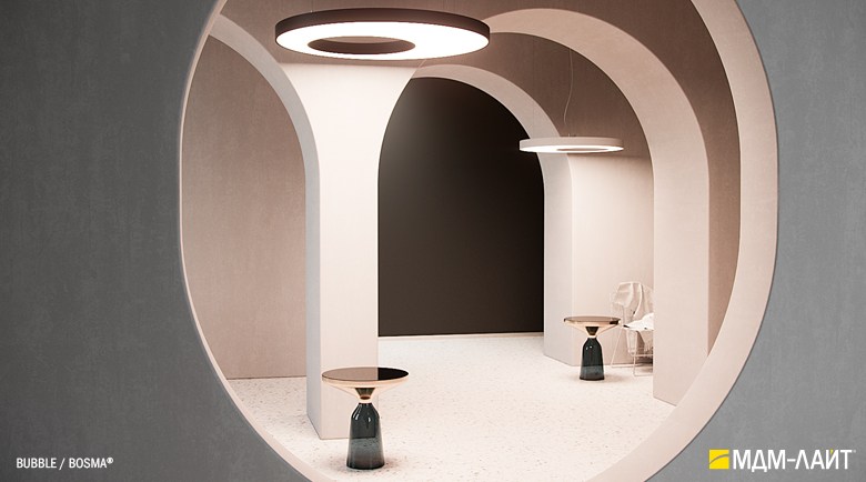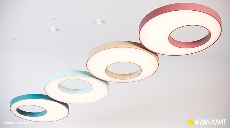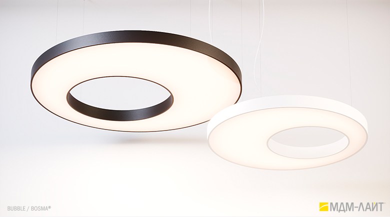 Серия больших светильников BUBBLE в форме круга с декоративным отверстием.