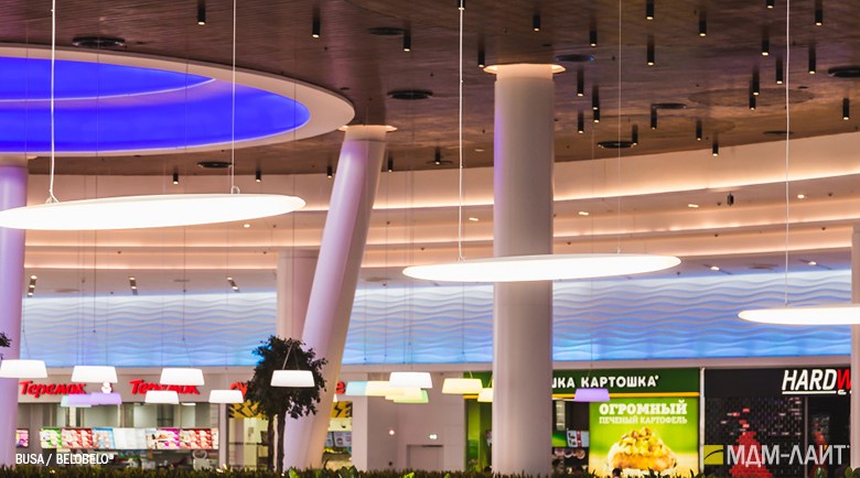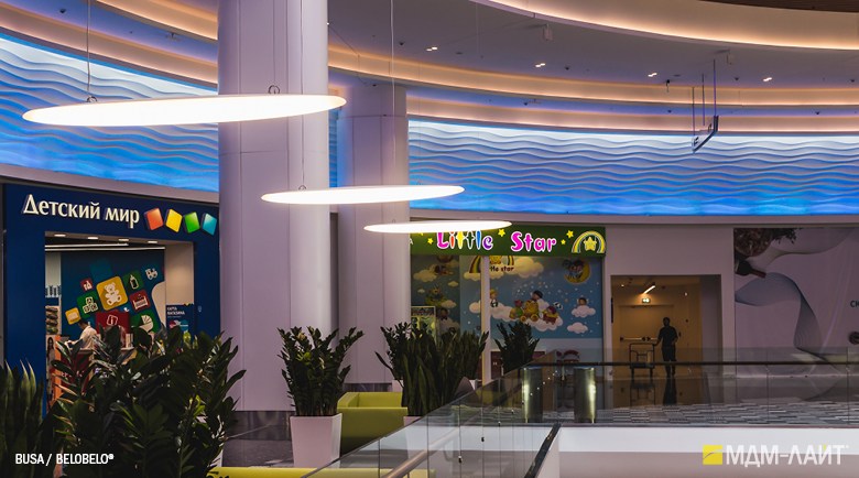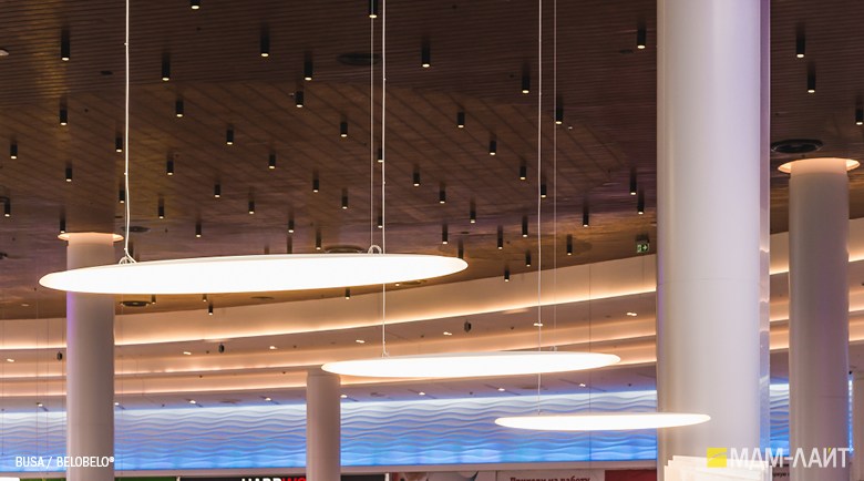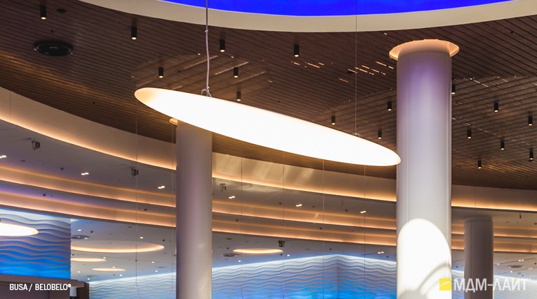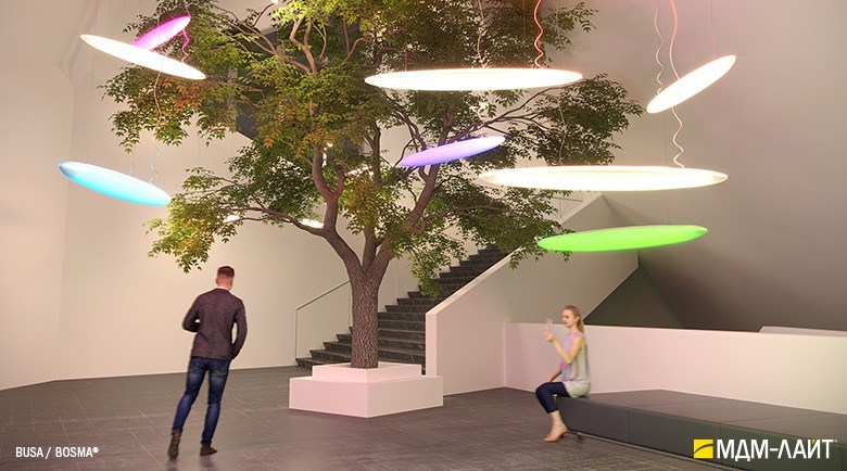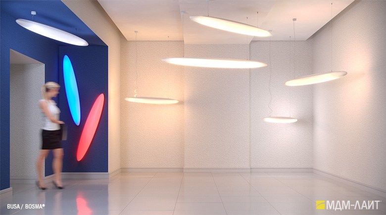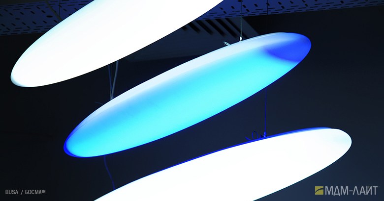 Серия светодиодных дизайнерских светильников BUSA торговой марки БОСМА больших размеров для декоративного и функционального освещения атриумов и холлов отелей, торгово-развлекательных и бизнес-центров, театров и т.д. . Белый корпус-рассеиватель обтекаемой формы этого большого подвесного светильника имеет коэффициент светопропускания 85-89% (согласно испытаниям ВНИСИ), обеспечивая интенсивный световой поток (до 103222 лм) и равномерную засветку без пикселизации. Коэффициент пульсации менее 1% не вызывает зрительной утомляемости. Широкое светораспределение исключает эффект ослепления при любых углах обзора даже в помещениях с низким потолком. Функция RGB с возможностью управления через ПК в сочетании с различными типами крепления позволяет создавать эффектные, запоминающиеся проекты освещения. Разработано и производится в России.