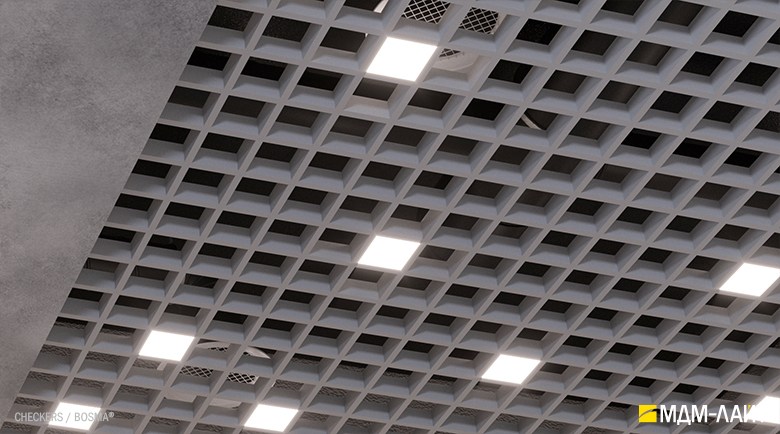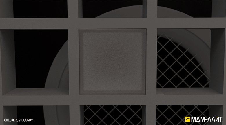 Помимо своего необычного внешнего вида, светильники обладают массой особенностей, выгодно отличающих серию CHECKERS от всего, что было придумано ранее для потолков Грильятто, а именно, высокоэффективные светодиодные модули, драйверы, отвечающие всем требованиям по электромагнитной совместимости, пульсации и множество вариантов размещения в ячейках, как хаотично, так и в виде композиций из элементов светильников данной серии.