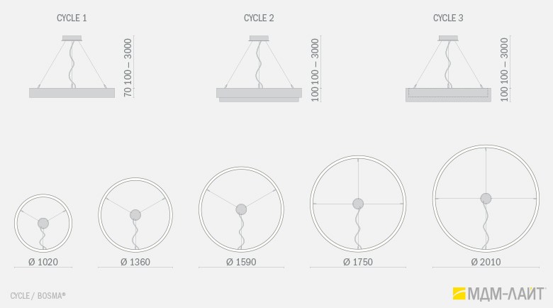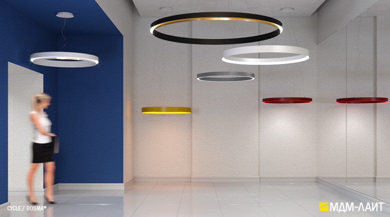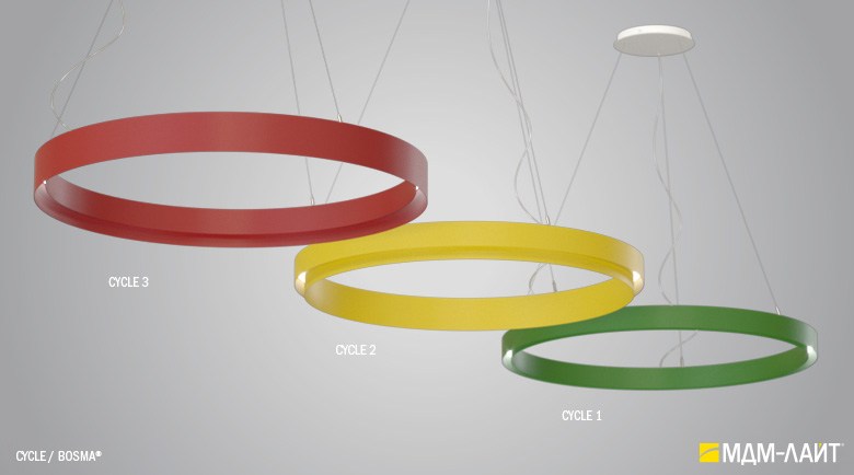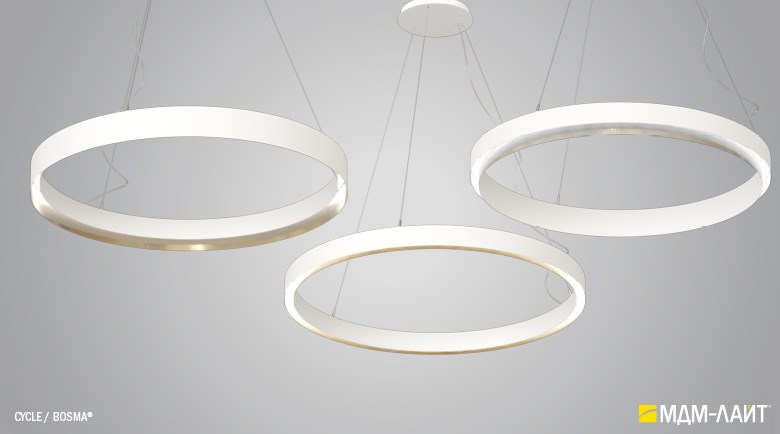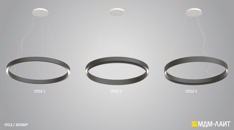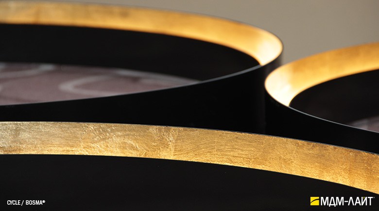 Декоративно-функциональный светодиодный светильник CYCLE. Модельный ряд представлен тремя вариантами исполнения корпуса с одинаковой и разными размерами внутреннего и внешнего диаметра корпуса светильника. Каждая модель представлена в нескольких размерах. Коэффициент пульсации менее 1% не вызывает зрительной утомляемости. Дополнительно, внутренняя поверхность корпуса светильника может быть декорирована поталью (золото, серебро и медь), что позволяет придать ему еще более изящный и интересный облик.