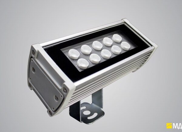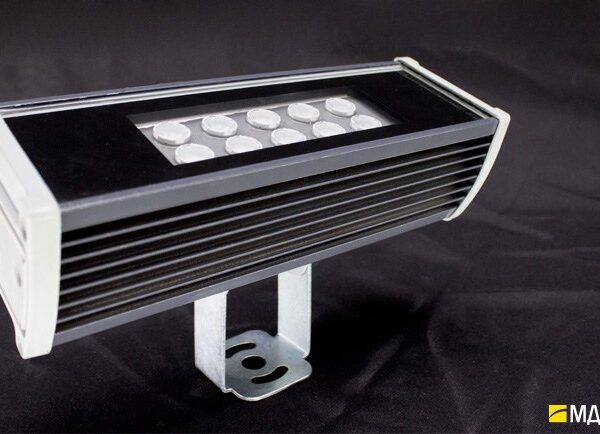 Крепится на фасад на статичном кронштейне. Третий по мощности в линейке RAD-S-Tw. Подходит для оформления входных групп и подсветки стилобата жилых комплексов.