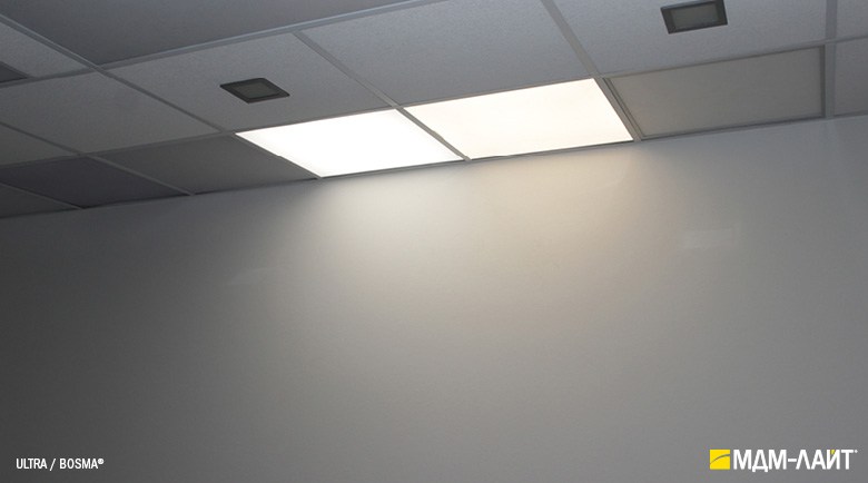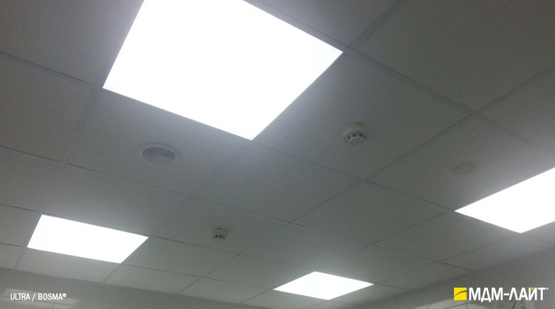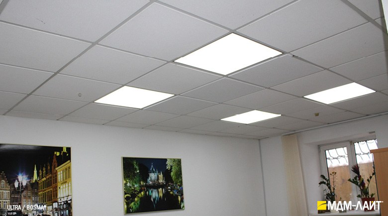 Светильник с легкостью вкладывается в направляющие элементы ячейки подвесного потолка типа «Армстронг». Малая глубина светильника (40 мм) позволяет встраивать светильник в потолки с запотолочным пространством от 50 мм. Отверстия на обратной стороне корпуса позволяют устанавливать светильники накладным способом на плоскую поверхность.