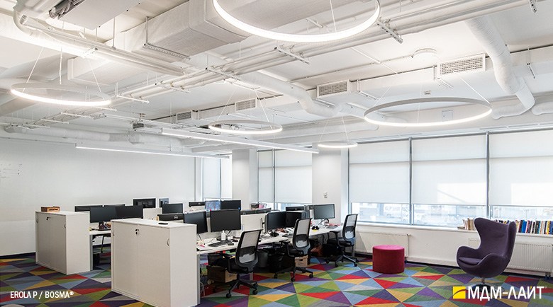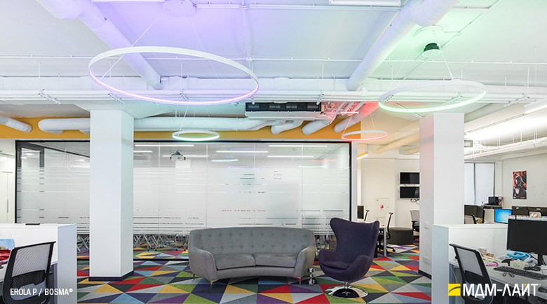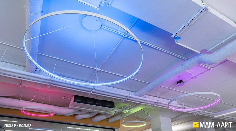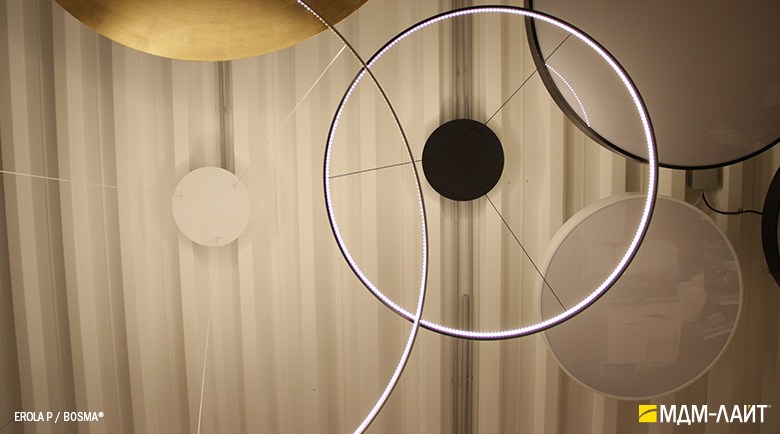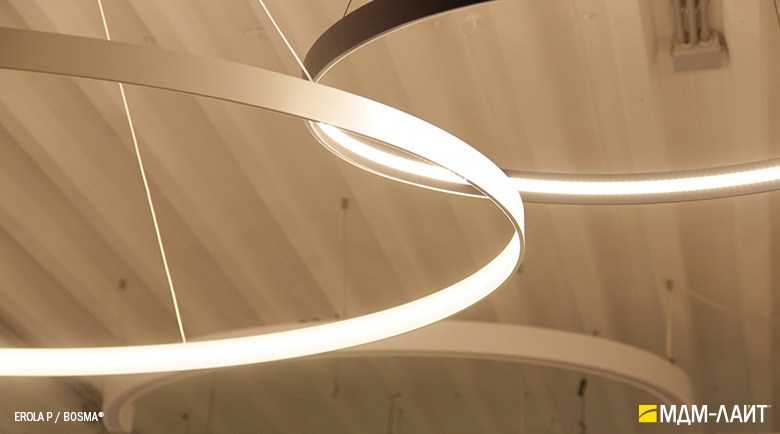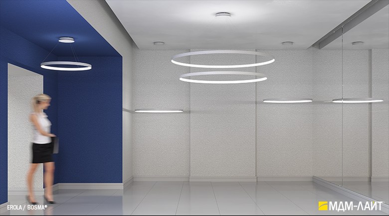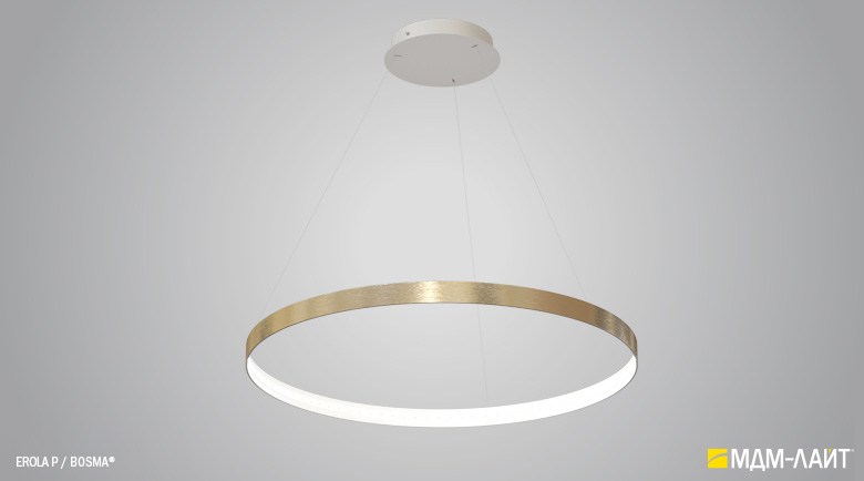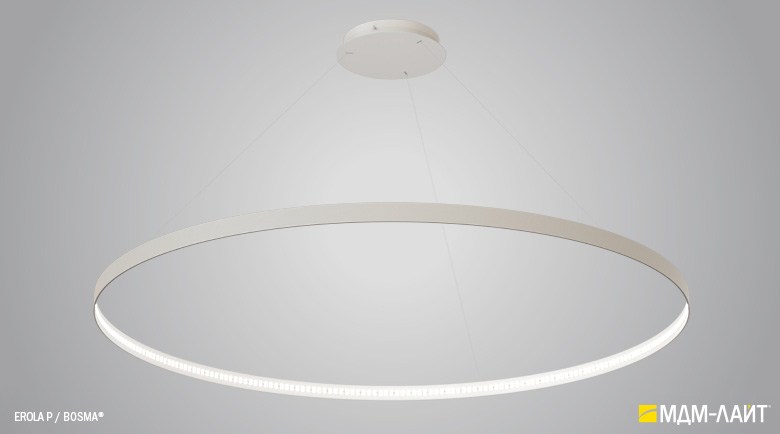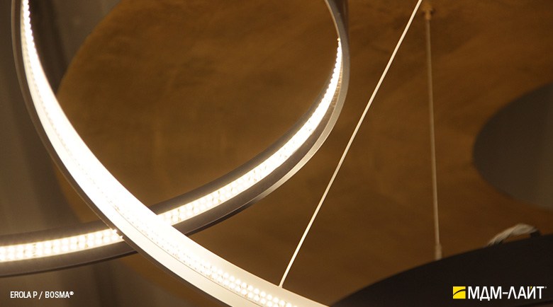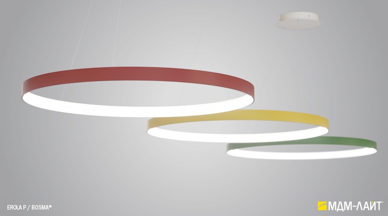 Декоративно-функциональный светодиодный светильник EROLA. Представляет собой плоское алюминиевое кольцо толщиной 4мм, высотой 40мм с источником света расположенным во внутренней части кольца и внешним драйвером. В комплекте поставляется декоративный драйвер бокс для установки светильника на плоскости потолка и регулируемыми подвесами. Уникальность EROLA во множестве комбинаций колец разного диаметра, что позволяет создавать объемные световые ансамбли. Разработан и производится в России.