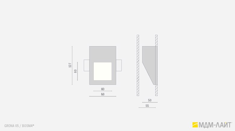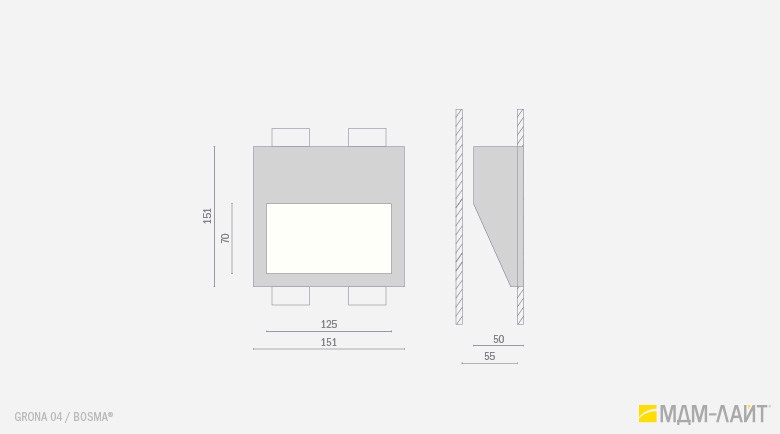 GRONA 04 I – светильник вогнутой формы с горизонтальным прямоугольным отверстием;