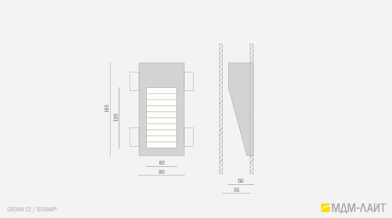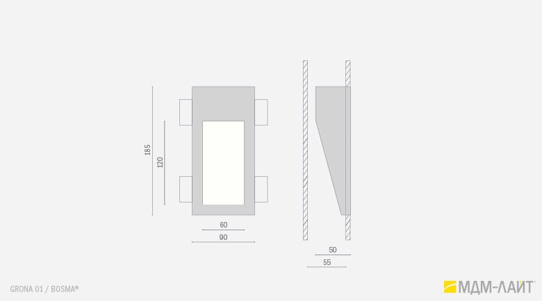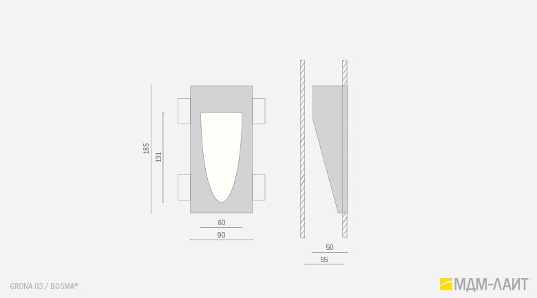 GRONA 01 I – светильник вогнутой формы с вертикальным прямоугольным отверстием;