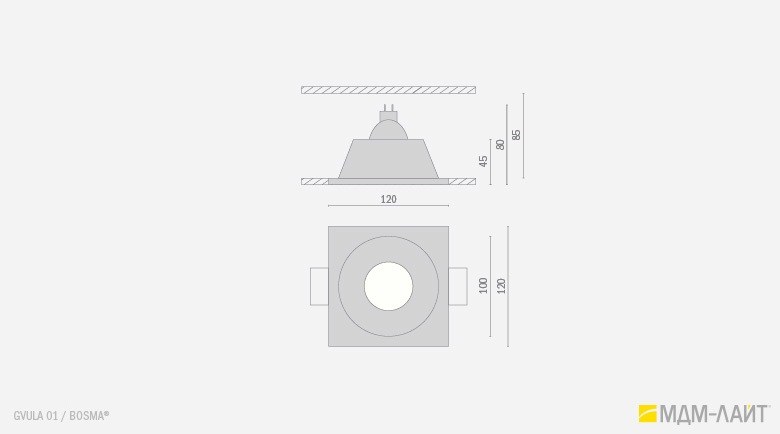 GVULA 01 I – светильник с отражателем сферической формы, глубина 45 мм;