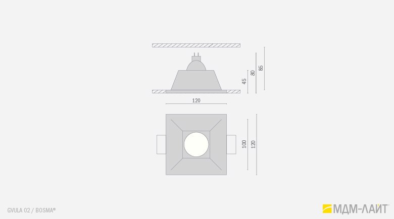 GVULA 01 I – светильник с отражателем сферической формы, глубина 45 мм;