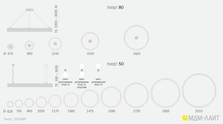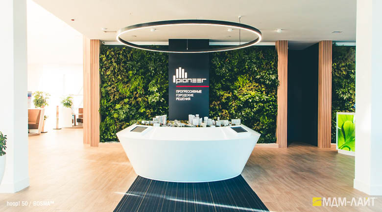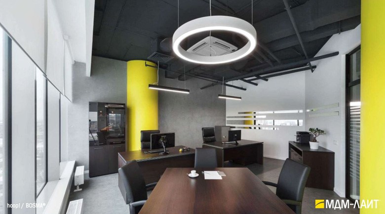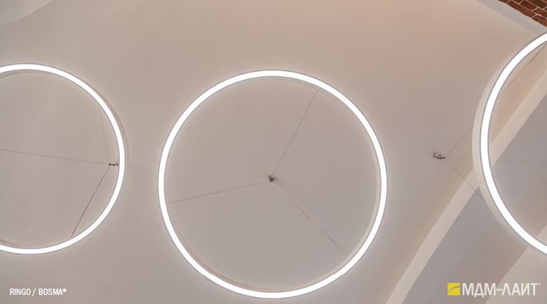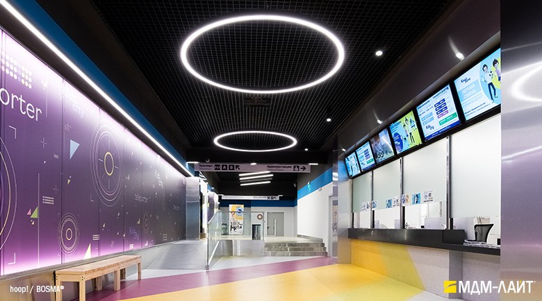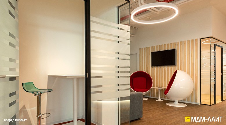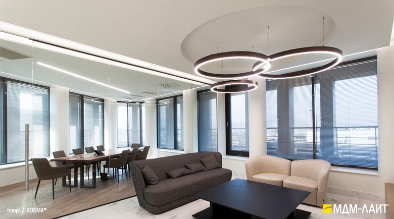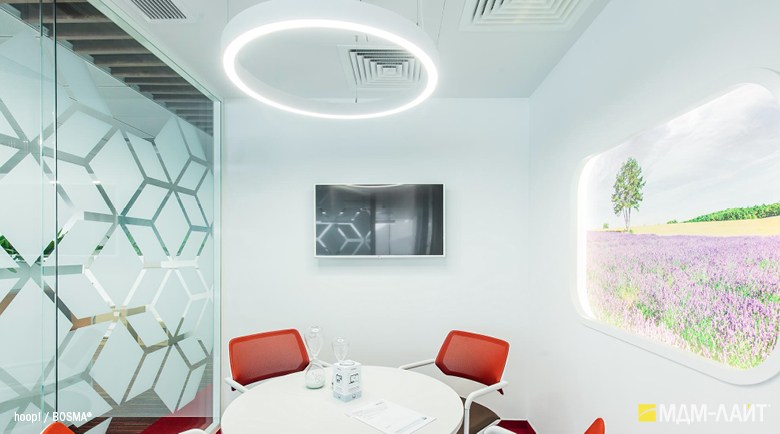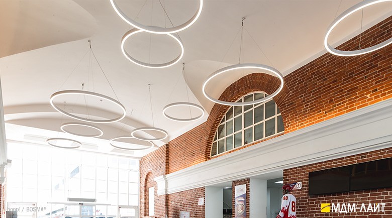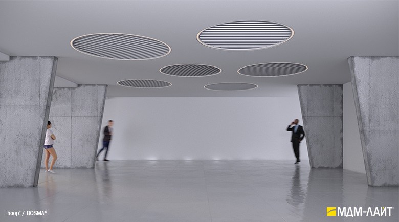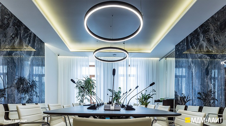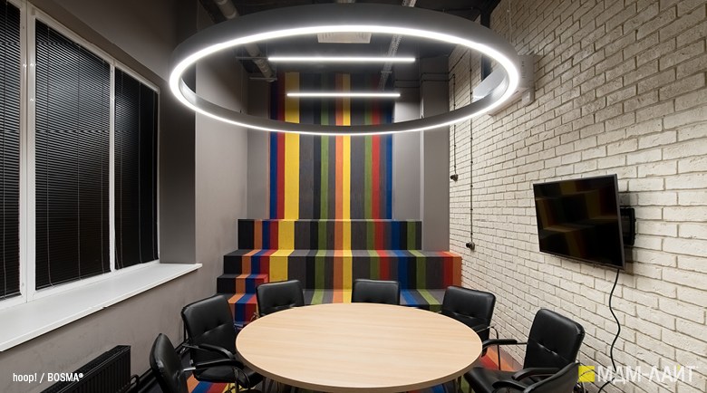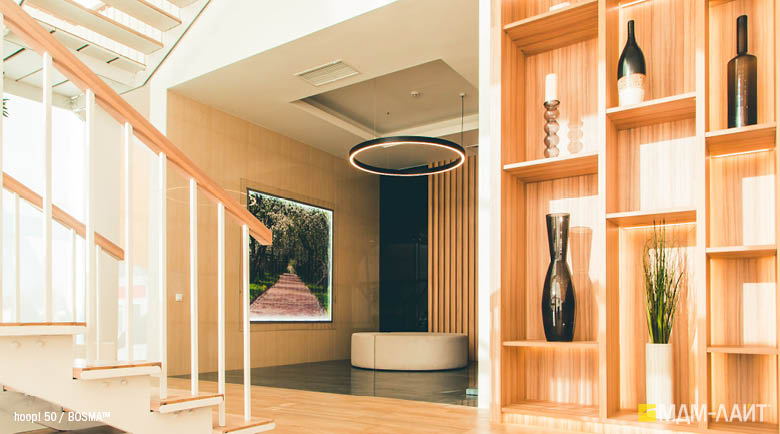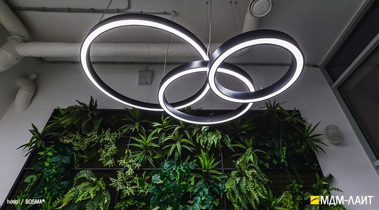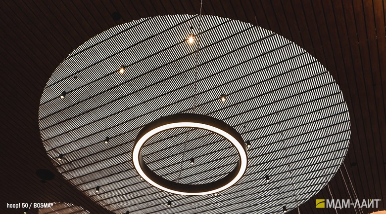Серия подвесных светодиодных светильников кольцеобразной формы hoop! (торговая марка — БОСМА). Большой выбор размеров — от компактных (d 620 мм) до крупногабаритных, с диаметром более двух метров, — позволяет находить решения для освещения разнообразных помещений, в том числе с высокими потолками. Модельный ряд представлен версиями с шириной корпуса 50 и 80 мм.