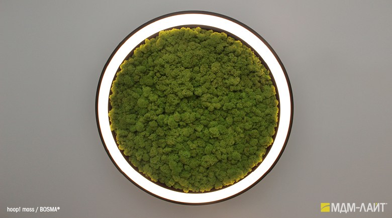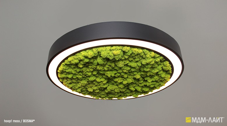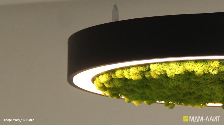 Специальная версия hoop! MOSS с декорированием центральной части светильника стабилизированным мхом Ягель. Доступна для диаметров 620, 760 и 900 мм.