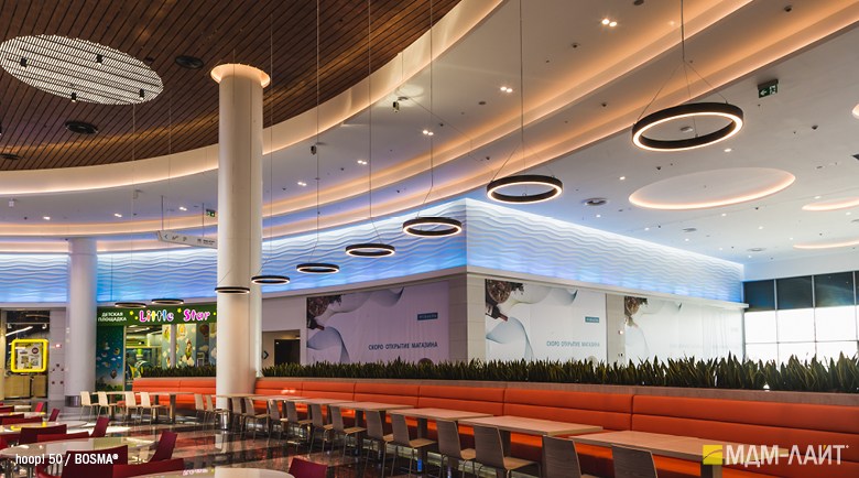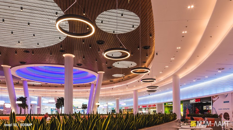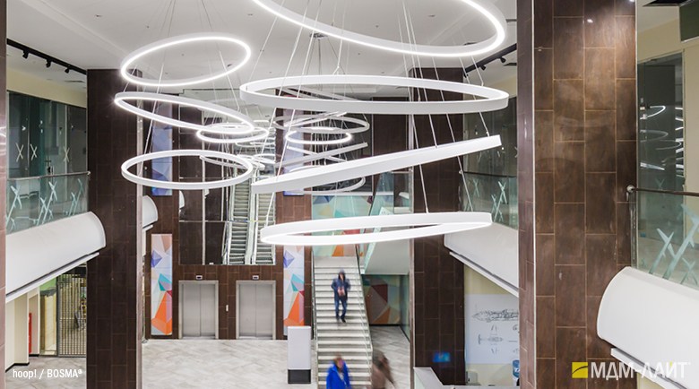 Серия светодиодных светильников hoop! рекомендована для общего и декоративное освещение магазинов, торговых и офисных центров; освещение холлов и атриумов, фойе отелей, ресторанов, бизнес-центров, салонов красоты, фитнес-клубов; освещение авто- и мотосалонов; создание световых композиций; локальная подсветка обособленных зон.