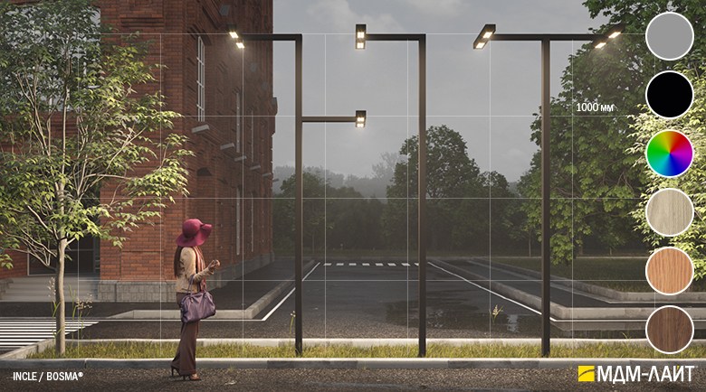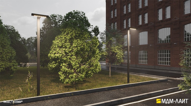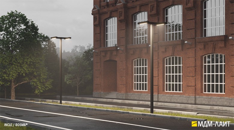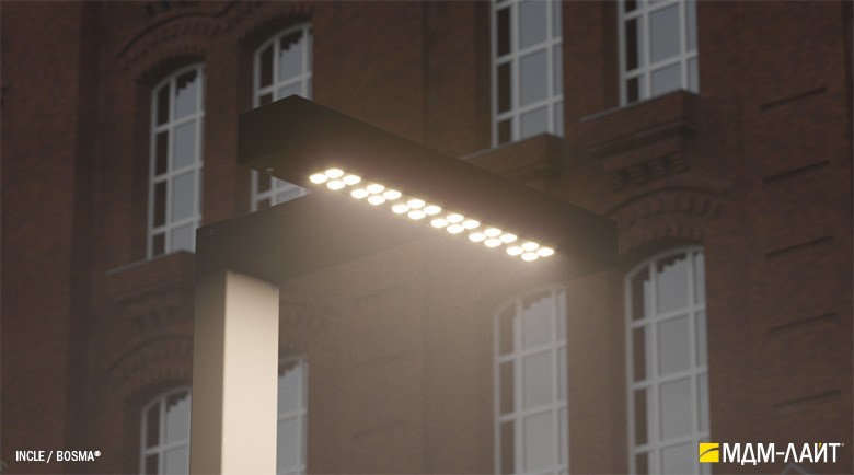 Серия уличных светодиодных светильников INCLE (ТМ БОСМА). Светильники применяются для садово-паркового и уличного освещения.