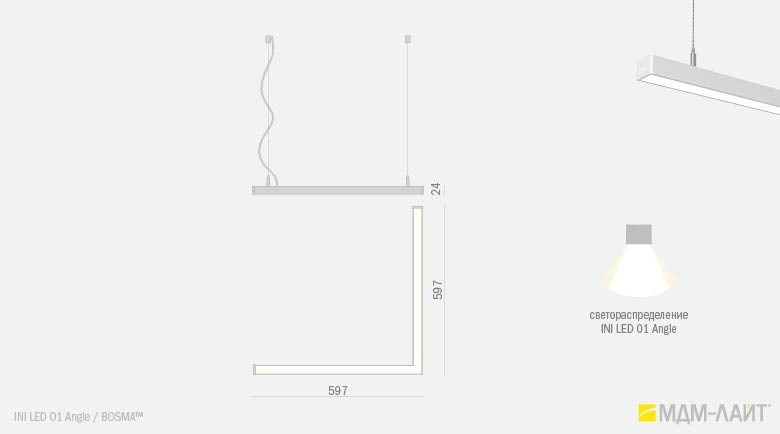 Функциональный подвесной светильники INI LED 01 Angle (торговая марка — БОСМА) — это модификация линейного светильника INI LED 01.