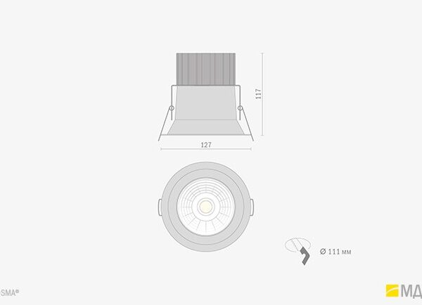 Декоративный светодиодный светильник типа downlight для подвесных потолков, возможность монтажа без дополнительного инструмента. Светильник в круглом исполнении с различными углами распределения света.