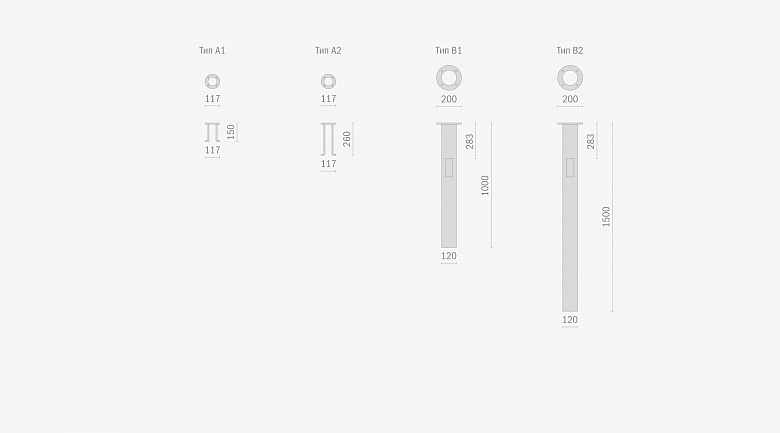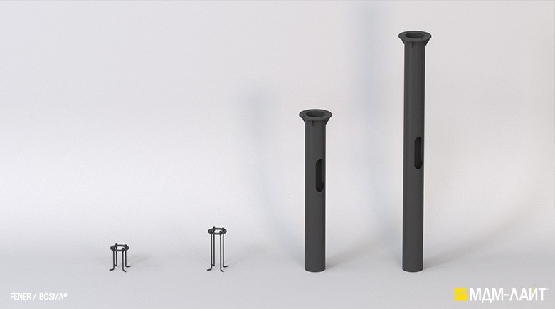 Закладные детали для монтажа опор светильников FENER 120 и FENER 120 ANGLE представлены двумя типами:
