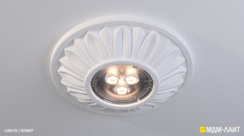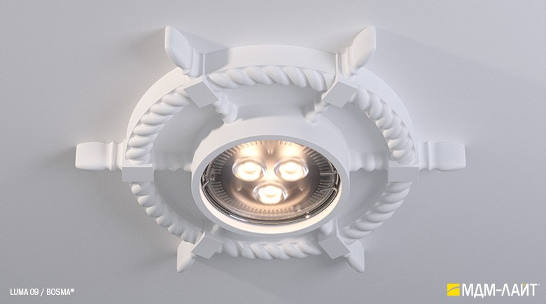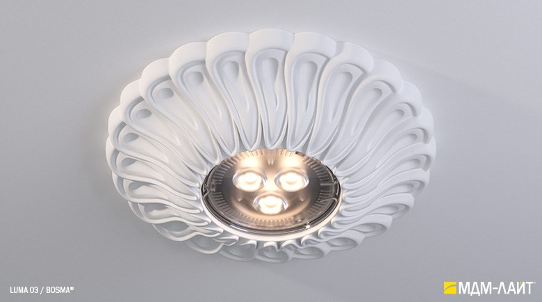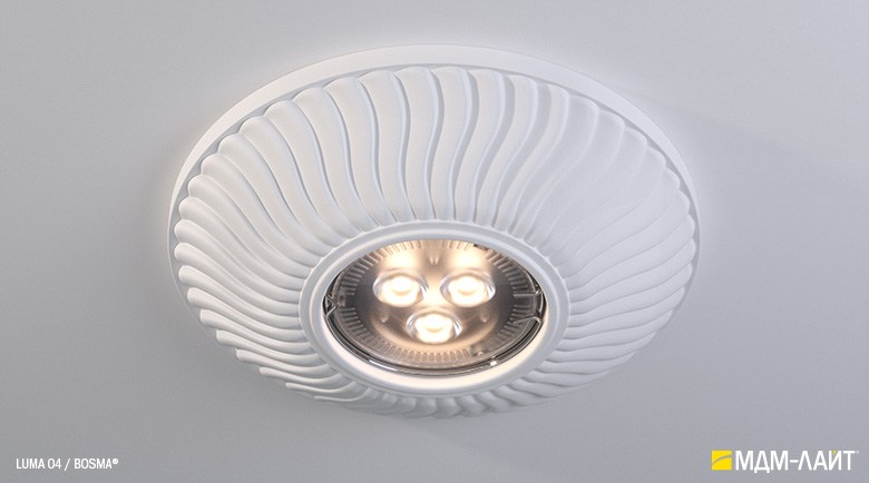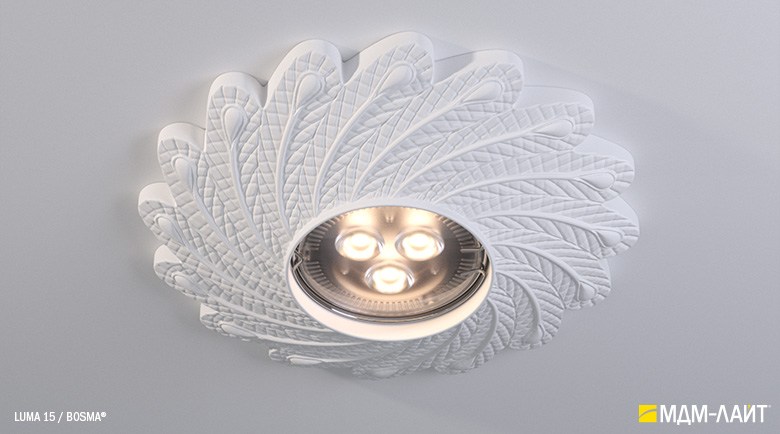 Гипсовые светильники серии LUMA встраиваются в поверхность потолка. Простая и удобная установка не требует специальной квалификации монтажников, что позволяет создать необычный дизайн в короткие сроки и при минимальных затратах.