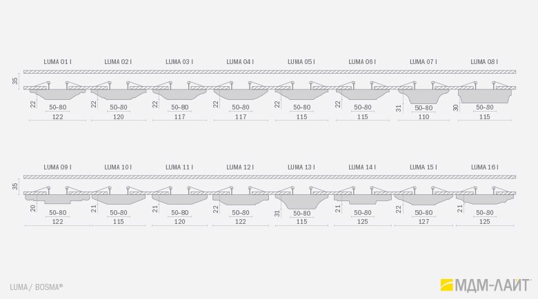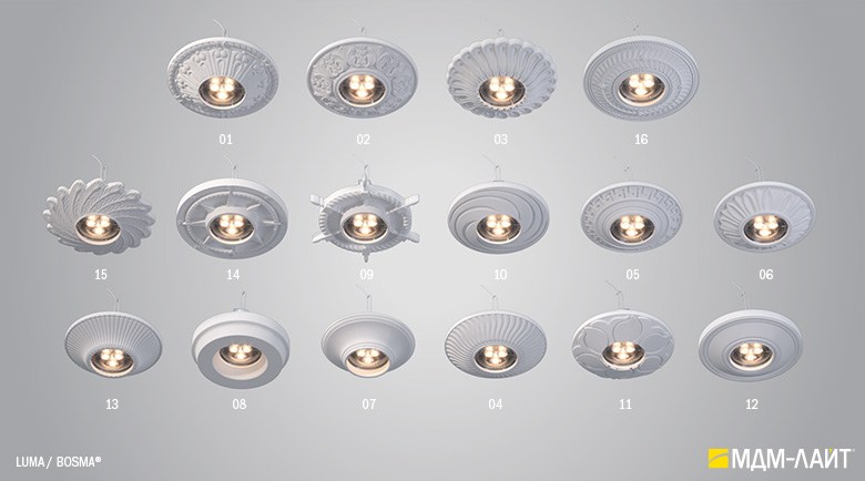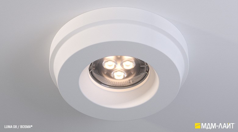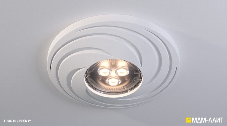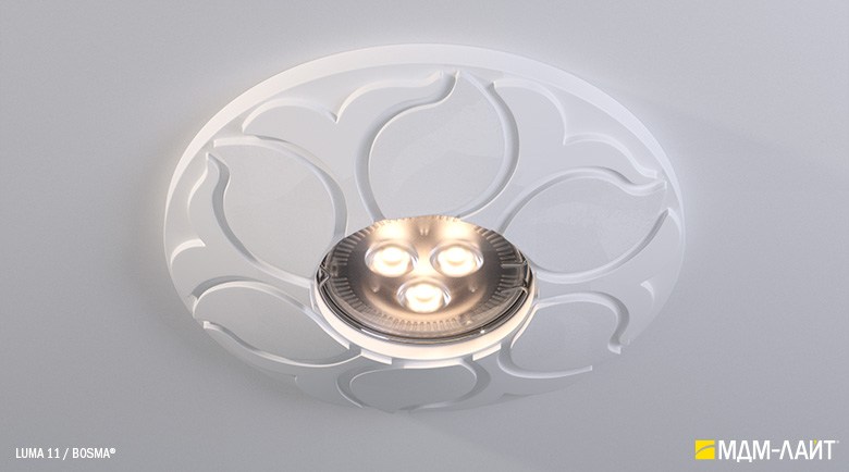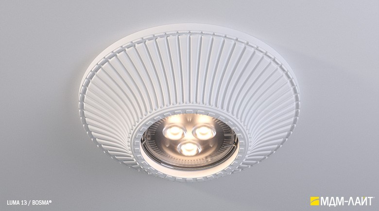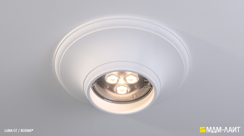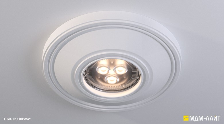 LUMA – серия встраиваемых потолочных светильников, изготовленных из гипсополимера, включающая в себя шестнадцать моделей: