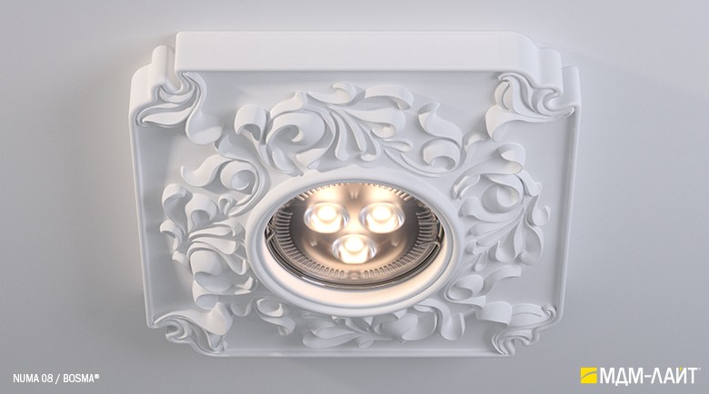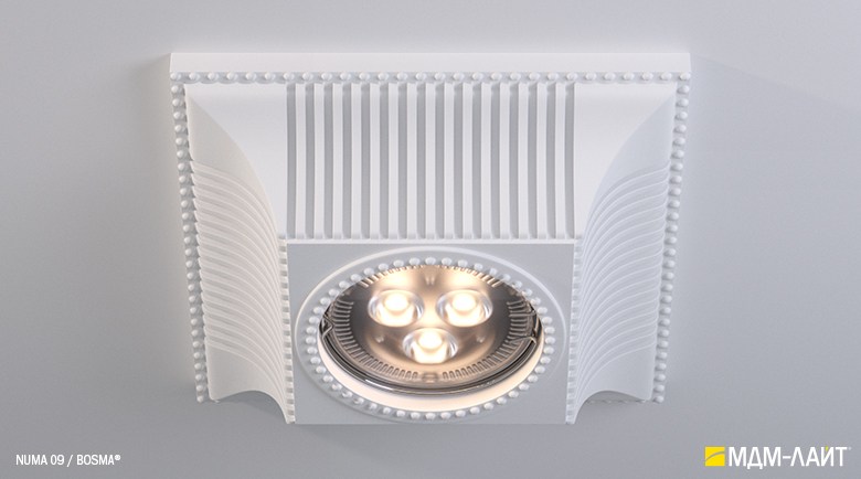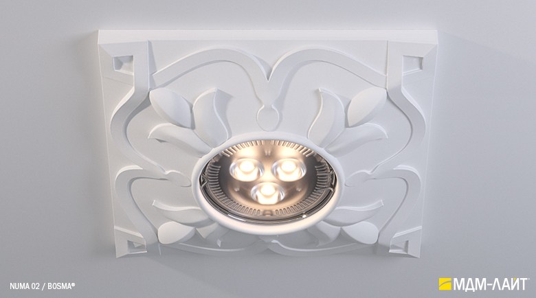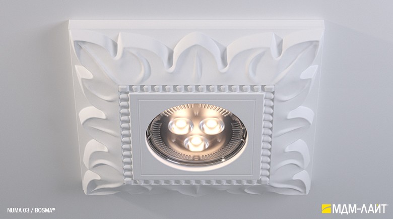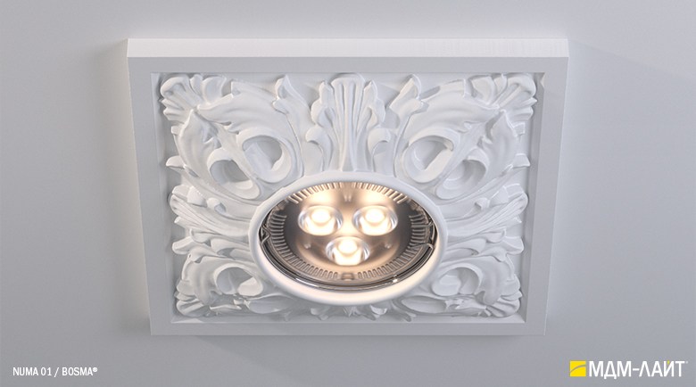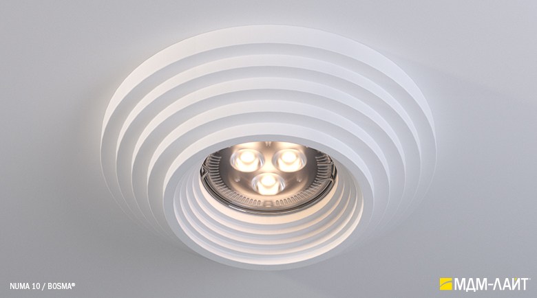 Гипсовые светильники серии NUMA встраиваются в поверхность потолка. Простая и удобная установка не требует специальной квалификации монтажников, что позволяет создать необычный дизайн в короткие сроки и при минимальных затратах.