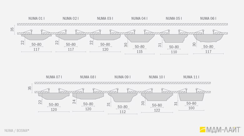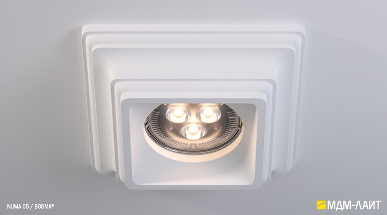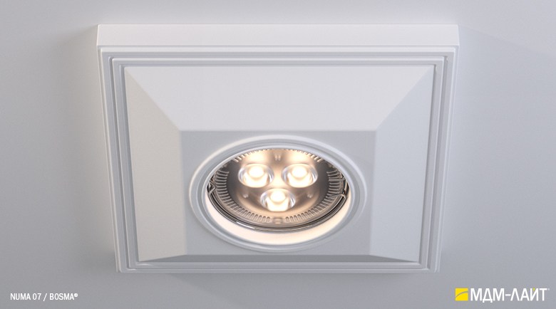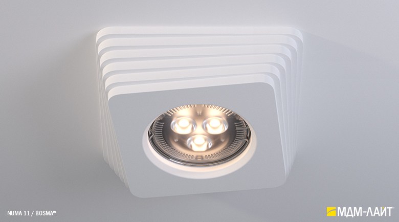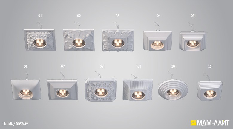 NUMA – серия встраиваемых потолочных светильников, изготовленных из гипсополимера, включающая в себя одиннадцать моделей: