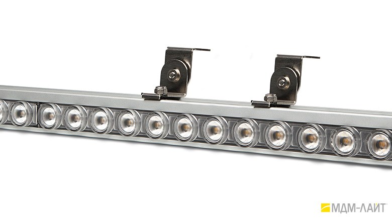 Крепление производится с помощью поворотных кронштейнов, которые в свою очередь крепятся к подвижным скобам светильника, позволяющим варьировать точки крепления.