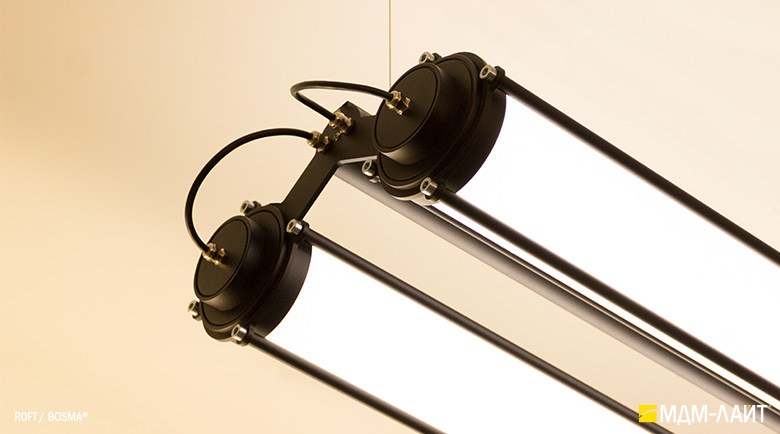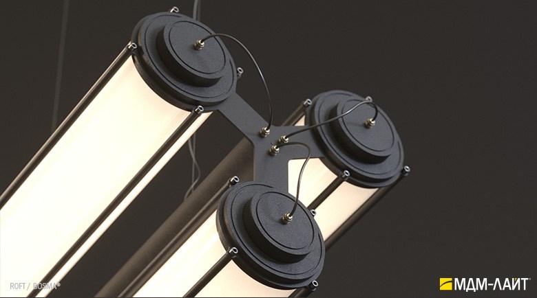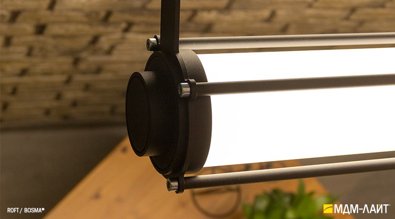 Серия лофтовых светильников ROFT изготовлена на базе серии светильников TRU-BA. Равномерно светящаяся поверхность каждой трубы обеспечивает высокое качество освещения: имеет широкое светораспределение, что позволяет эффективно освещать даже габаритные помещения. Отличительной особенностью светильника являются сварной алюминиевый корпус с декоративными прутьями. Светильник разработан и производится в России.