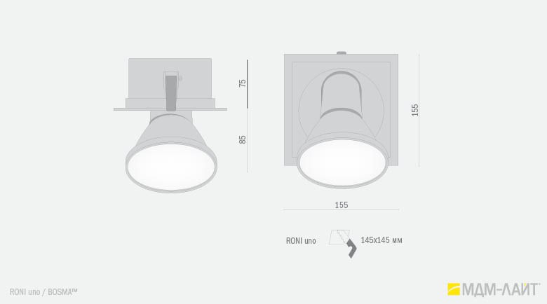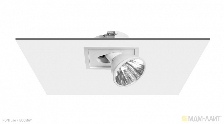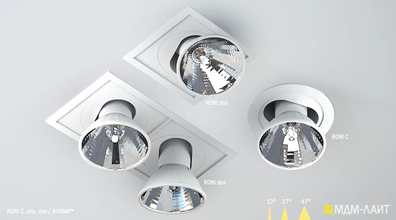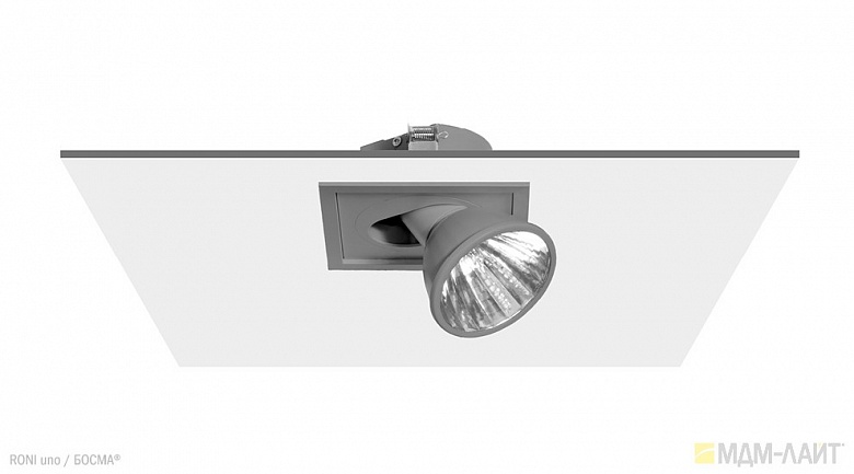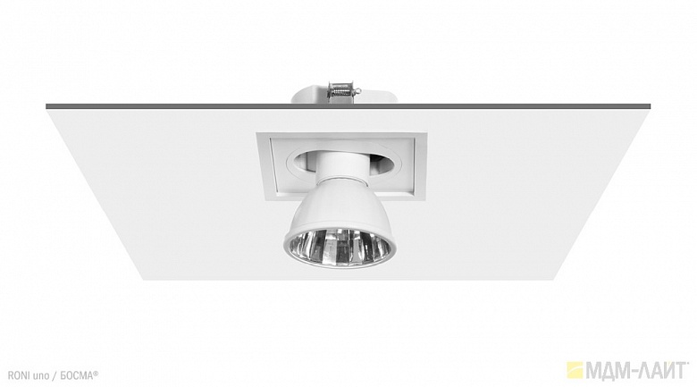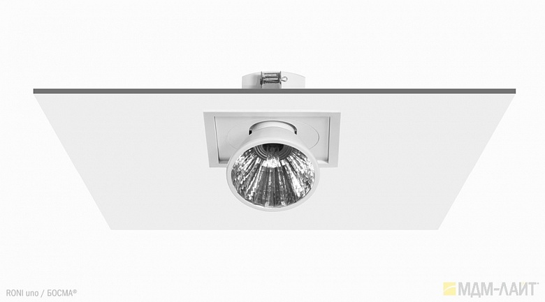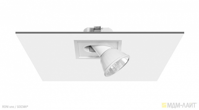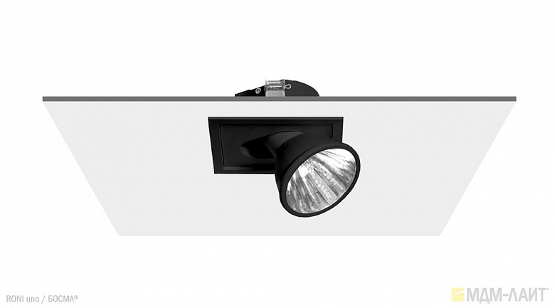 Серия встраиваемых металлогалогенных светильников RONI uno торговой марки БОСМА (BOSMA™). Глубина встраивания — 75 мм. Классика для торговых объектов.
