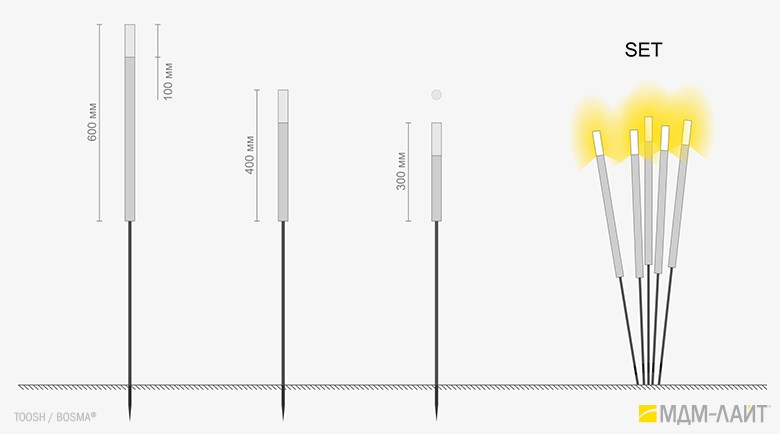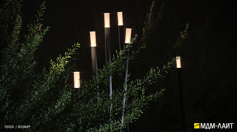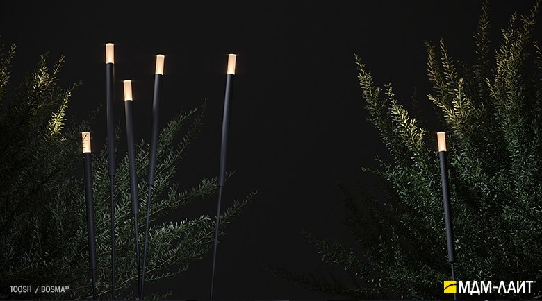 Серия светодиодных светильников TOOSH 30 для декоративного уличного освещения. На создание серии светильников нас вдохновила природная форма травянистого растения рогоз. Соцветия рогоза – «свечки» выполнены в виде узких труб, диаметром 30 мм с функциональным акриловым плафоном в верхней части.